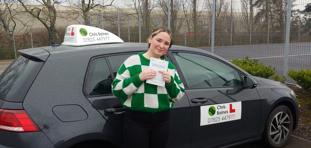 Congratulations to Chloe on passing your driving test 1st time! A great reward and a true reflection of your abilities. Enjoy your driving, good luck for the future. See you on the road!
